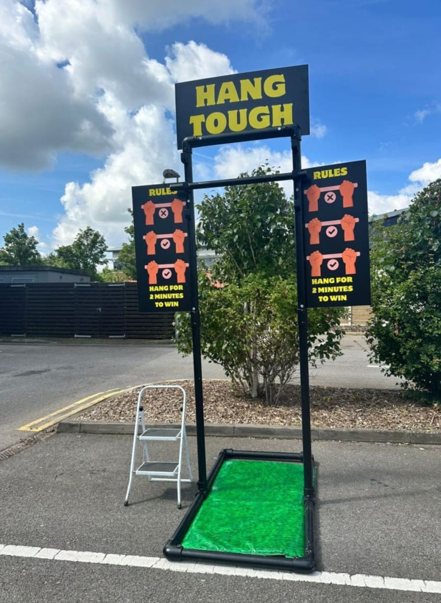 Make your event unforgettable with the Hang Tough Challenge. Contact us today to check availability, customize your branding, and hire this unique attraction for your next event in London, Kent, Essex, or anywhere nationwide.