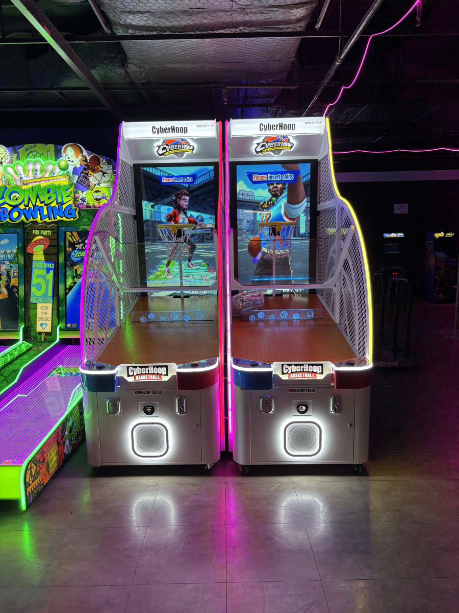 Cyber Hoop is ideal for adult arcades, leisure centres, bowling alleys, entertainment venues, and competitive gaming environments looking to add a high-performing, visually impressive basketball arcade machine.