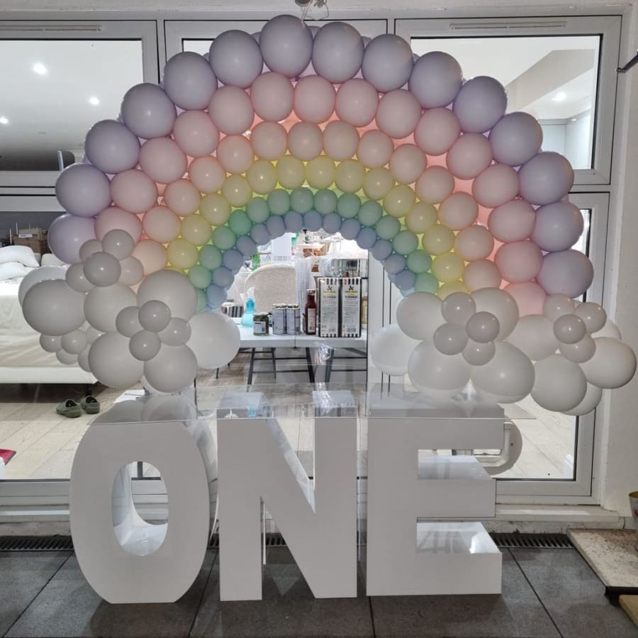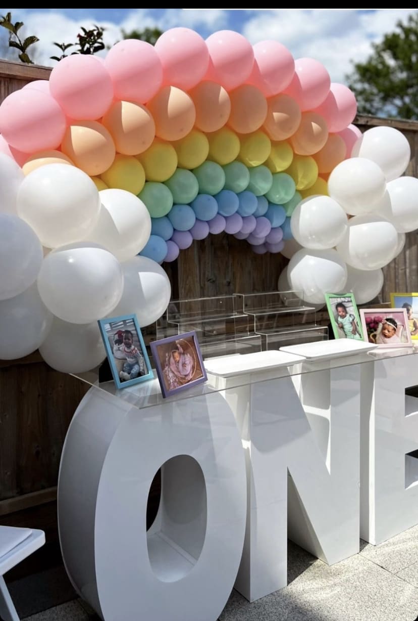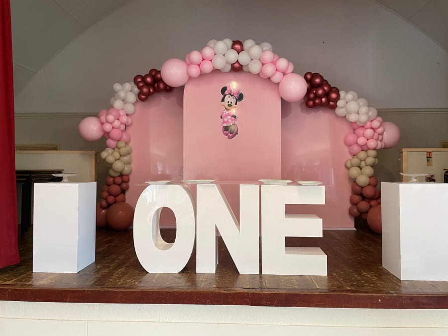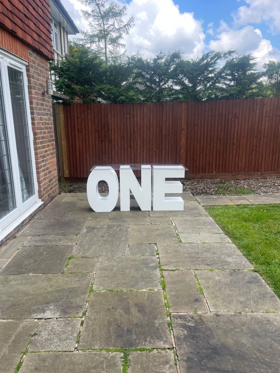 Create a stunning focal point for 1st Birthdays or Anniversaries with our ONE Letter Table, available for hire in Bexley, Bromley, Maidstone, Sevenoaks, and throughout Kent. Measuring 1.5m long, 50cm deep, and 80cm tall, it's the perfect statement piece. Book with Modern Day Bounce House for an unforgettable event!"