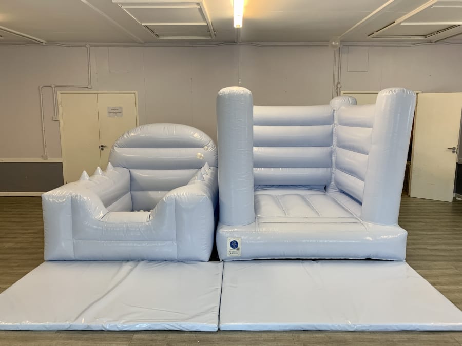 Introducing our Midi Bouncer & Air Juggler, the perfect addition to any party or event! This pastel blue toddler bouncer and air juggler ball pond will provide hours of fun and entertainment for your little ones.