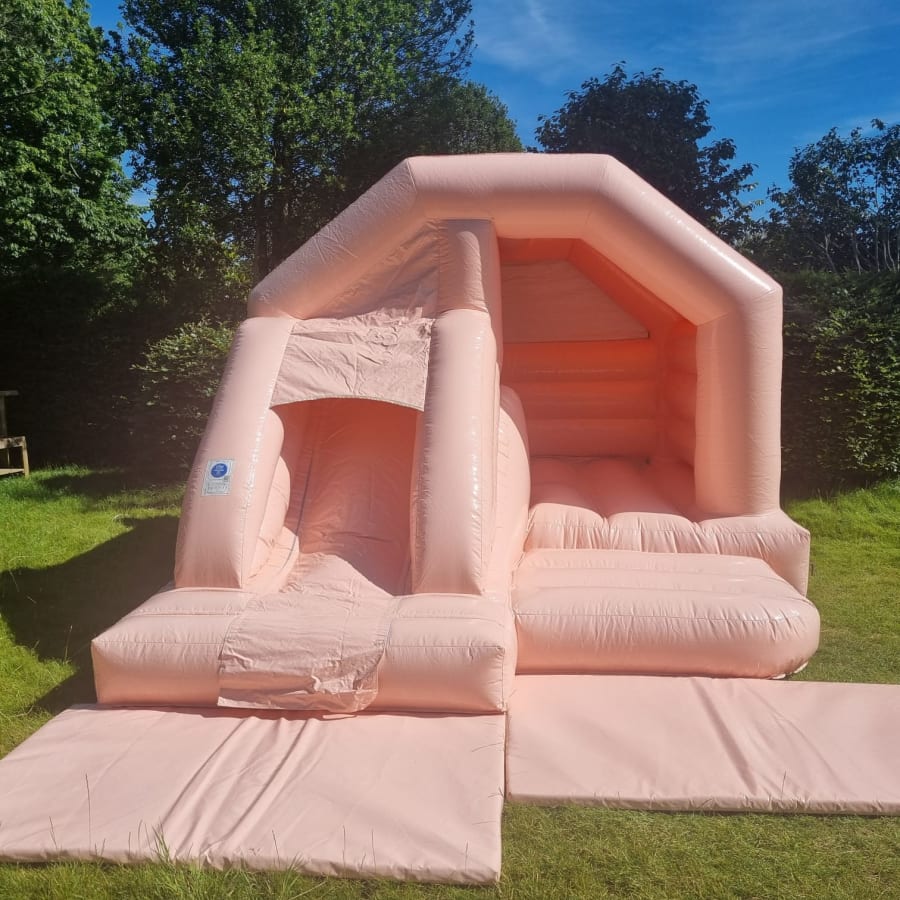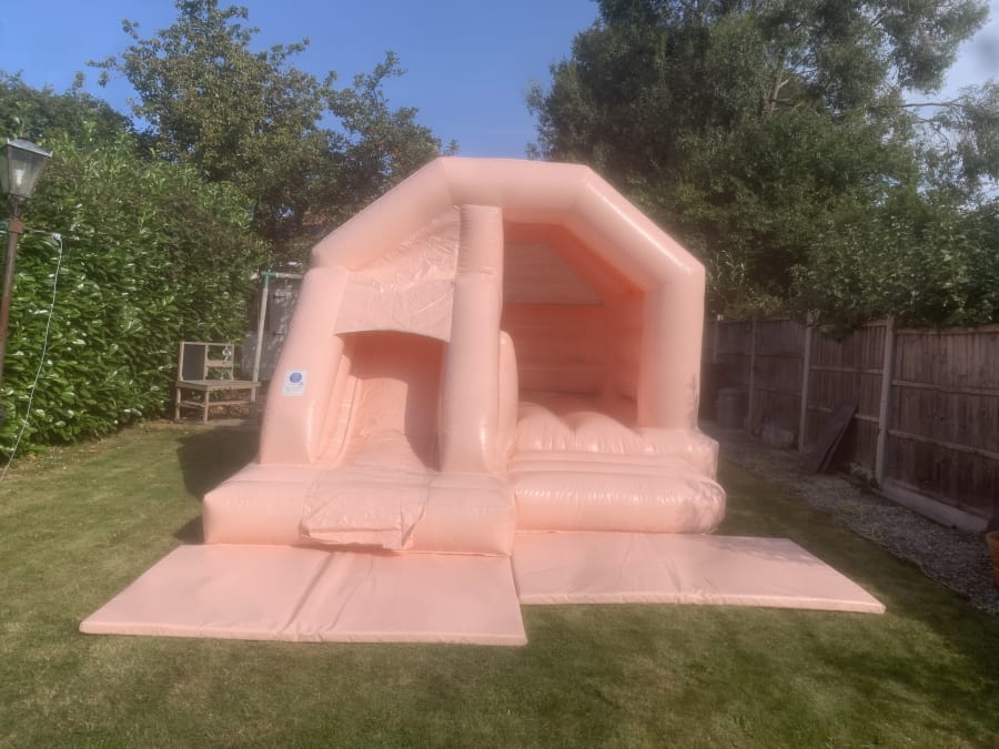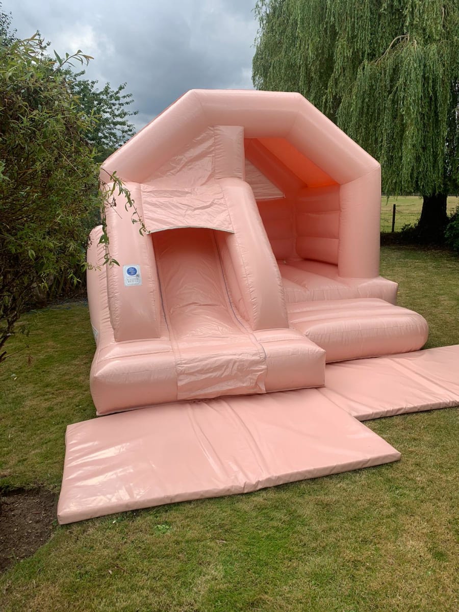 This pastel peach bounce and slide will be carefully cleaned to ensure the colour reaches its full lustre before your event, and will have been tested and inspected in accordance with Health and Safety Executive recommendations. We want this pastel bouncy castle to look incredible on your big day, and we want you to be amazed by the service you receive from us so that you use us every time you throw a kid-friendly party.