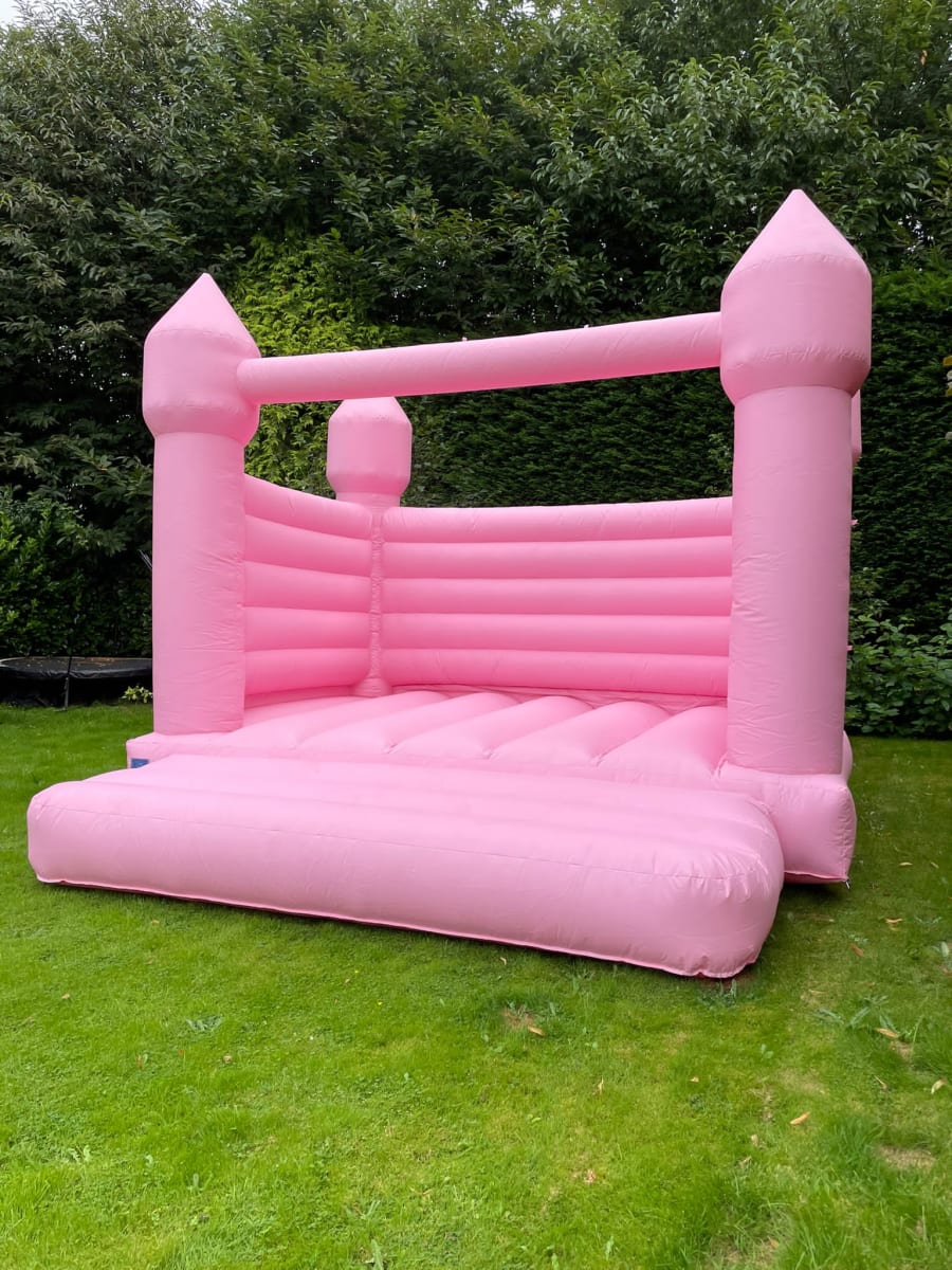 This pastel pink bouncy castle has a larger size and deeper bed than our children's pastel pink inflatable, so it can cope with heavier and larger people. This means that adults can get loose and start bouncing around like they did when they were kids.