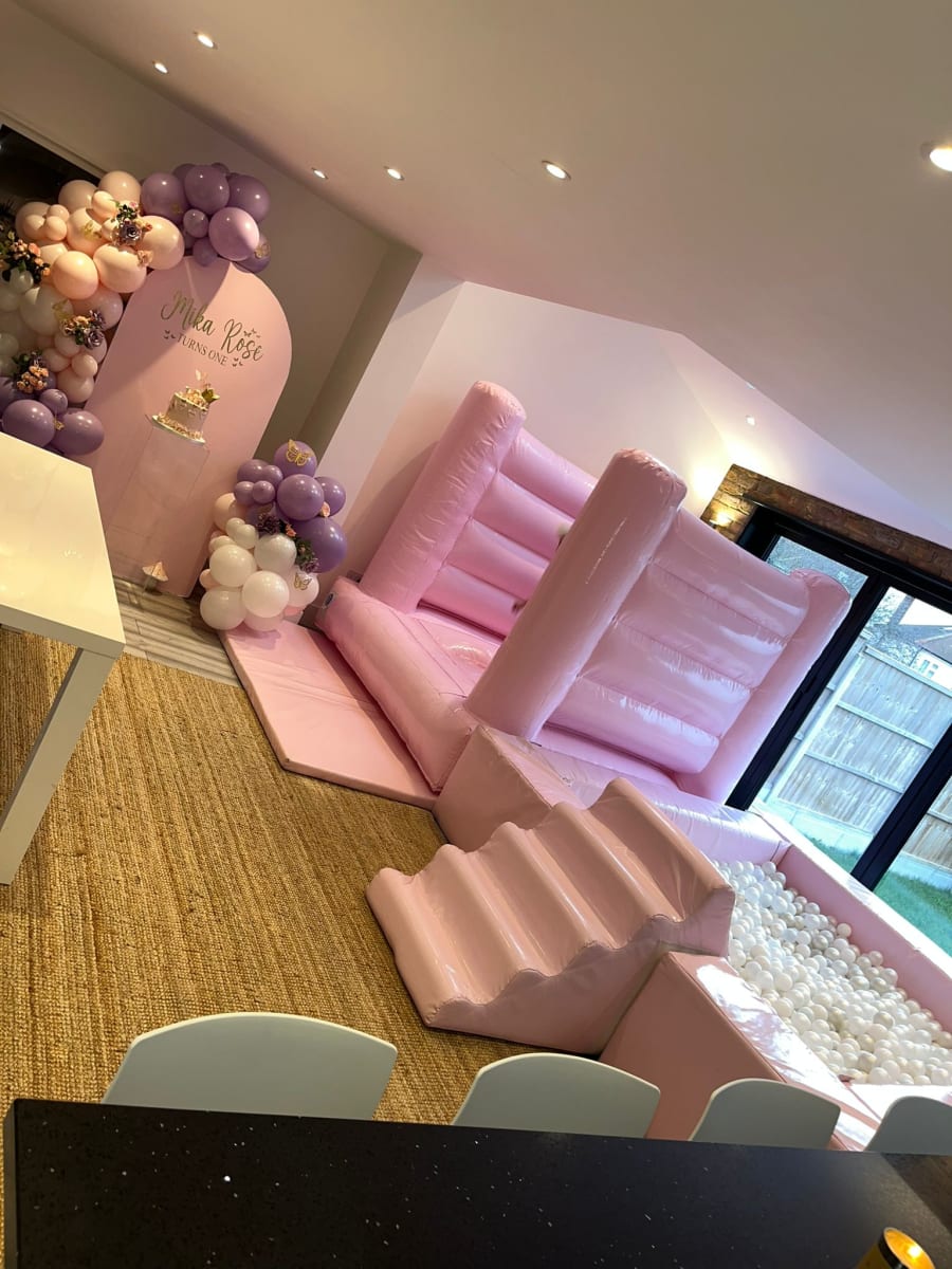 We are ready right now to deliver the unique thrill of this inflatable package to addresses across Kent, London and Surrey. This product is always popular, so to avoid disappointment reserve it for the date of your party today? It's so easy to book online using our online system, so within minutes you and your family can look forward to the pastel pink bouncer and soft play arriving on the date you specify!