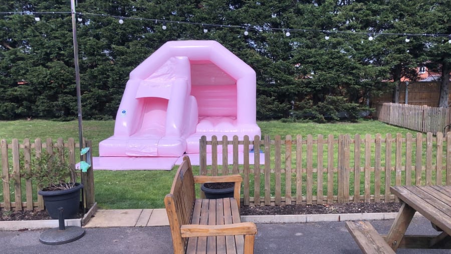 The Pastel Pink Bounce N Slide Bouncy Castle is suitable for all ages and will look amazing on your special day.